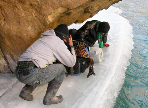Travel distance between Leh and Chilling is around 64 KM. We reach now to the point, past the village of Chilling to where the roadhead ends. Touching the Chadar first time, we start the trek for 1-2 hrs along the magnificent frozen river Zanskar till Tilat Sumdo. Overnight in tent.