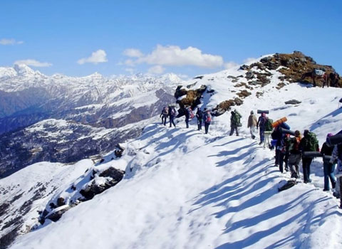 Make sure you wake up early to view the beautiful sunrise from your campsite. The trail to the summit is straigh forward through a small patch of oak trees. A few feet short of the summit, you can spot a temple with idols of lord Ganesh, Shiva and Parvathi. The summit is a five minute climb from the shrine. It is marked by a cairn with a Shiv Trishul & Ganesh murati that points to the sky. Spend some time at the summit and descend back to the base camp by noon for lunch, mostly we are provide pack lunch in summit The trail down to Bainya bugiyal is spectacular as it ascends and descends through oaks, pines and frozen streams. Reach Dunda thach by evening and camp for the night.