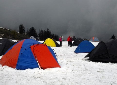Accommodation in tents on share basis during trekking.